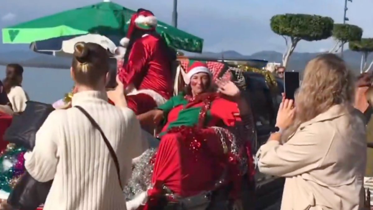 Etkinliğe ait görüntülerde kırmızı ‘Noel Baba’ kostümleri giymiş şahısların yeşil ve kırmızı süslemelerle donatılmış bir Fethiye Belediyesi’ne ait zabıta aracı görüldü.