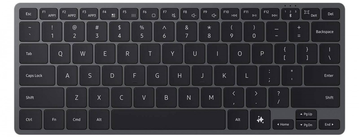 Üç cihazla eşleşebilen klavyede, bu cihazlar arasında geçiş yapmak için özel bir tuş yer alıyor. Aynı zamanda yapay zeka asistanını çağırmak ve masaüstü DeX moduna geçmek için özel tuşlar da klavyede bulunuyor. Üst sırada medya oynatma kontrolleri, ses kontrolleri, Android kullanıcı arayüzünde gezinme (Ana Ekran ve Görev Değiştirici) ve çalışma alanı değiştirici için düğmeler yer alıyor. F1, F2 ve F3 tuşlarını favori uygulamalar için kısayol olarak atamak da mümkün.